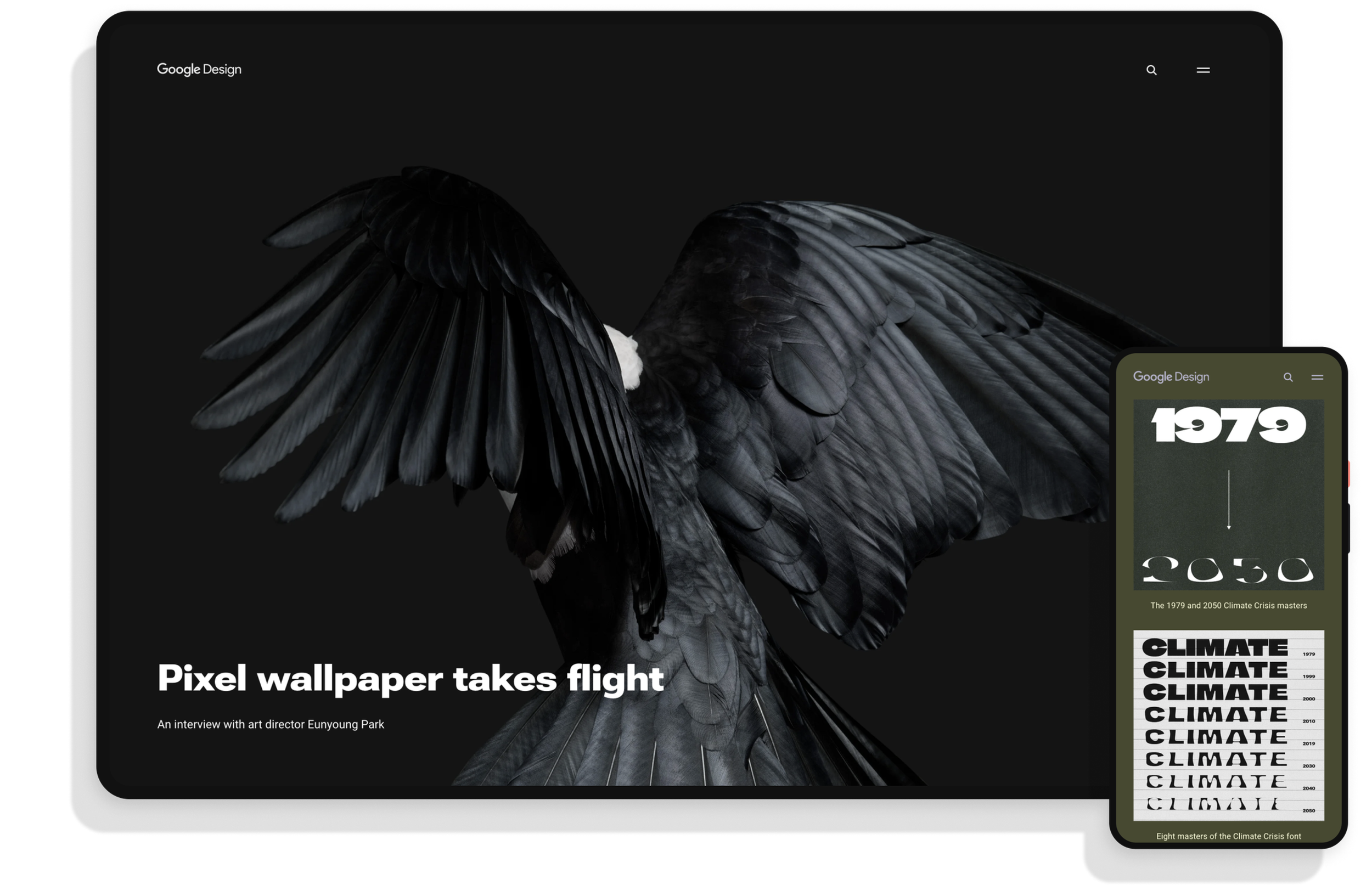 Google Design is a platform for exploring the intersection of design and technology. Reflecting the diversity of design at Google, this forum showcases culture defining ideas and celebrates the contributions of individuals and teams across Google and the community. To support these efforts we designed and built a platform to enable editorial expression and the ability to evolve the experience over time.